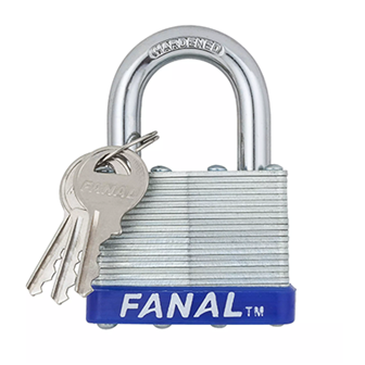 Los candados de acero laminado FANAL ofrecen mayor resistencia a la corrosión gracias al recubrimiento de Zinc anticorrosivo aplicado a cada una de las láminas que conforman el cuerpo. Ideales para uso exterior.